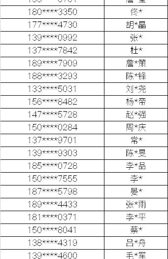 名单如下