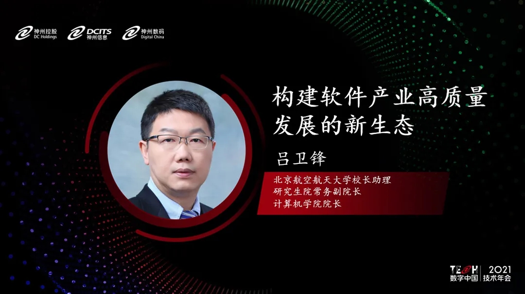 北京航空航天大学校长助理、计算机学院院长吕卫锋在以“构建软件产业高质量发展的新生态”的主旨演讲中表示:“软件正成为人类社会基础设施,软件能力的建立与持续技术创新是国家核心竞争力。未来新兴软件的发展正在探索软硬一体化设计、从云计算到云原生、云边端融合、AI增强、高安全、高效率、分布式转型等,基于开源的新兴软件生态体系建设需采取“参与融入、蓄势引领”的开源策略,构建开源为核心的驱动引擎和辐射体系。要把握政策红利,在人才培养、知识产权、成果应用、国际合作、制度标准等方面形成良好生态环境,共推软件产业高质量发展。”